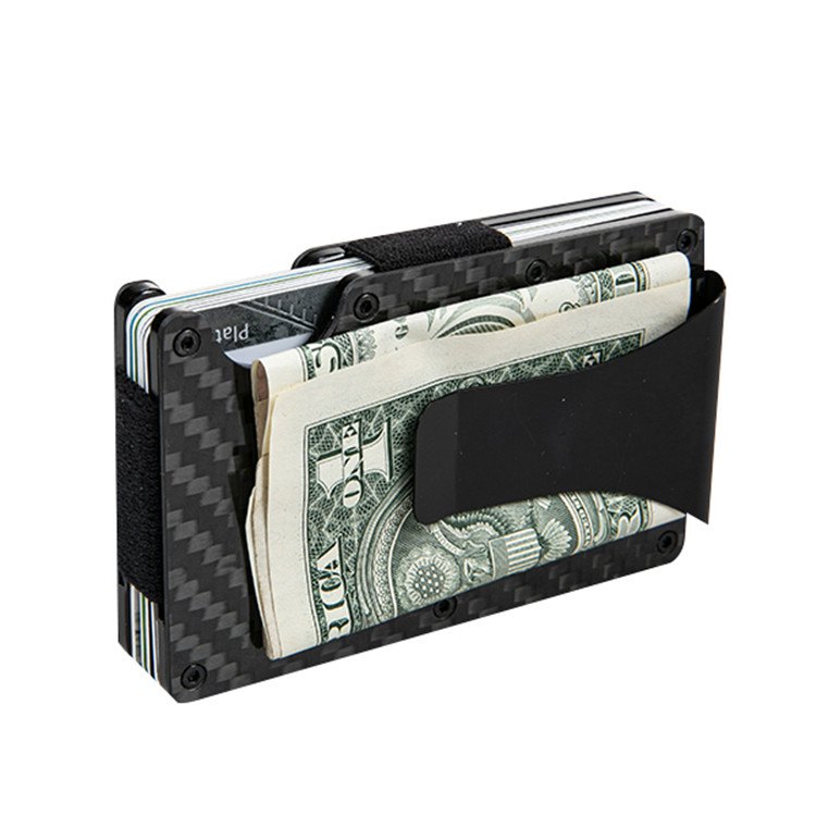 Snáithín Carbóin Sparán Minimalist RFID le Gearrthóg Airgid